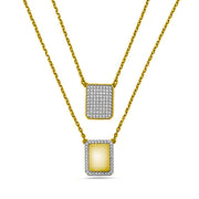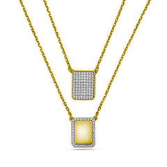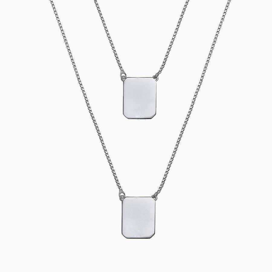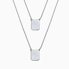 Create a new and genuinely classy look with this marvelous sterling silver scapular necklace (from Latin scapulae, "shoulders") designed by Anthony Pecoraro. Its beautiful double plates with natural white diamonds design is simple yet extraordinarily elegant and guaranteed to elevate your style to minute you put it on.