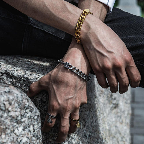 10MM CURB LINK CHAIN AND HALF SMALL CHAIN BRACELET