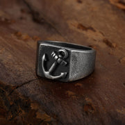AGED RECTANGULAR ANCHOR SIGNET RING