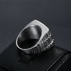 Stainless Steel Men's Fashion Rectangular Cracked Ring