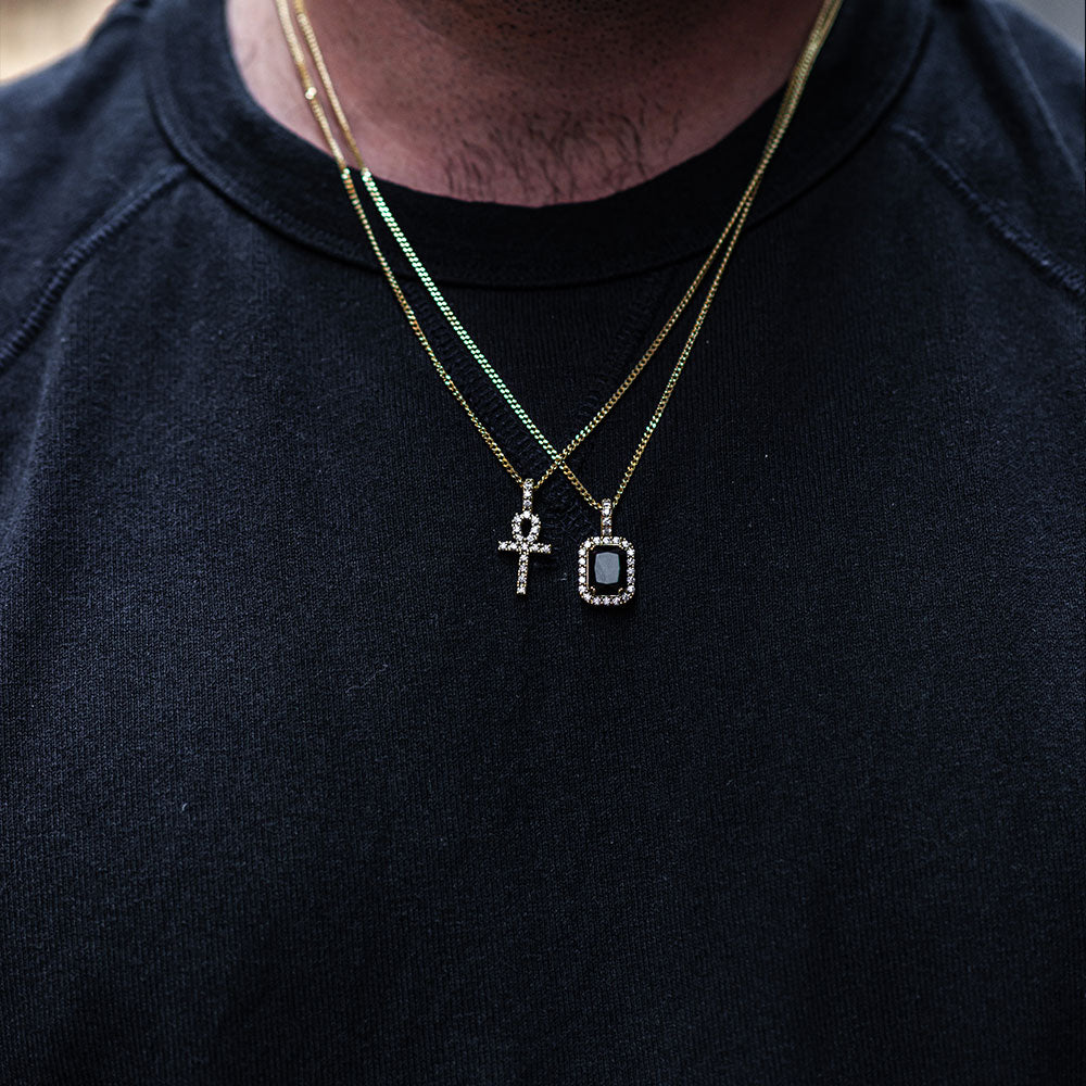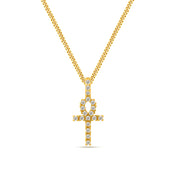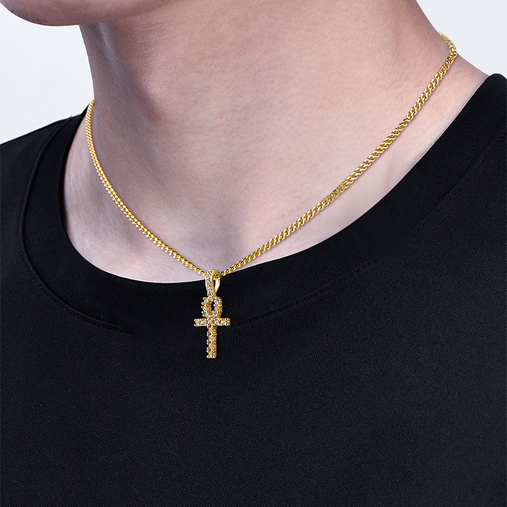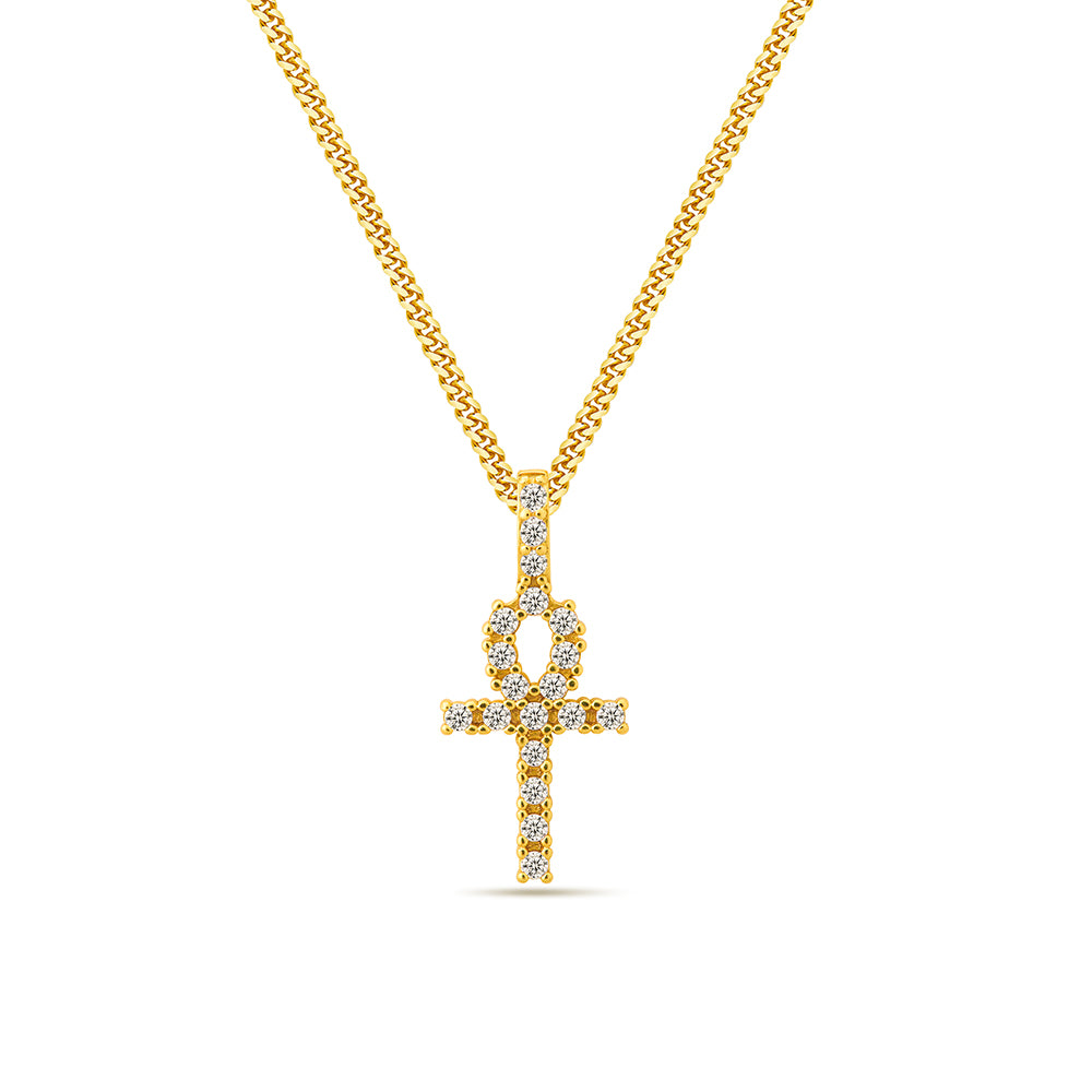 18k gold plated 925 sterling silver micro pave iced diamonds ankh cross pendant necklace with miami curb link chain