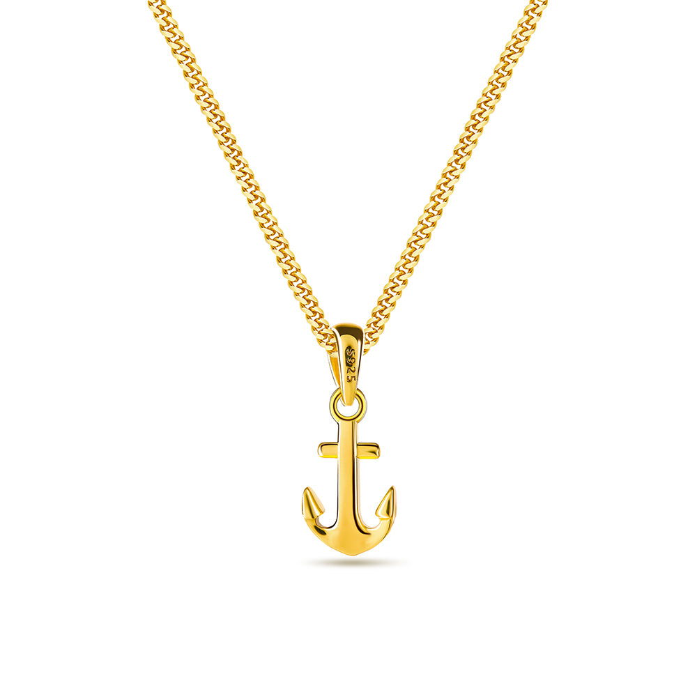 18k gold plated 925 sterling silver micro anchor shape pendant necklace with miami curb link chain
