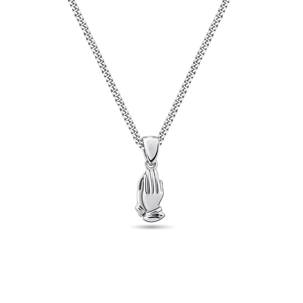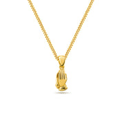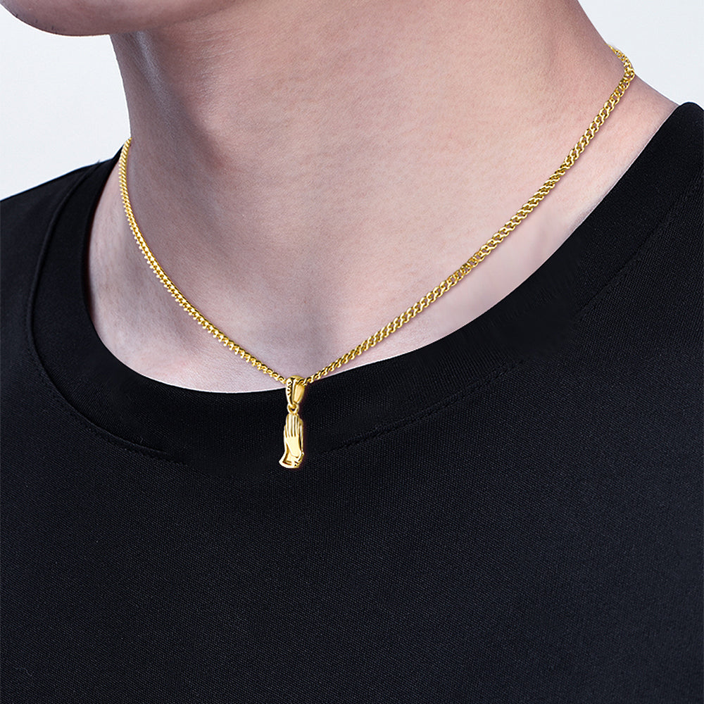 18k  gold plated 925 sterling silver micro praying hands pendant necklace with miami curb link chain