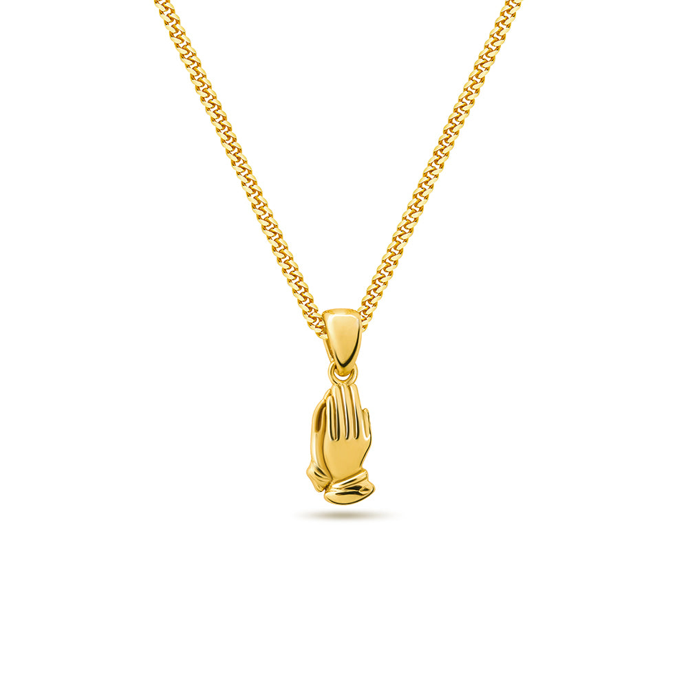 18k gold plated 925 sterling silver micro praying hands pendant necklace with miami curb link chain
