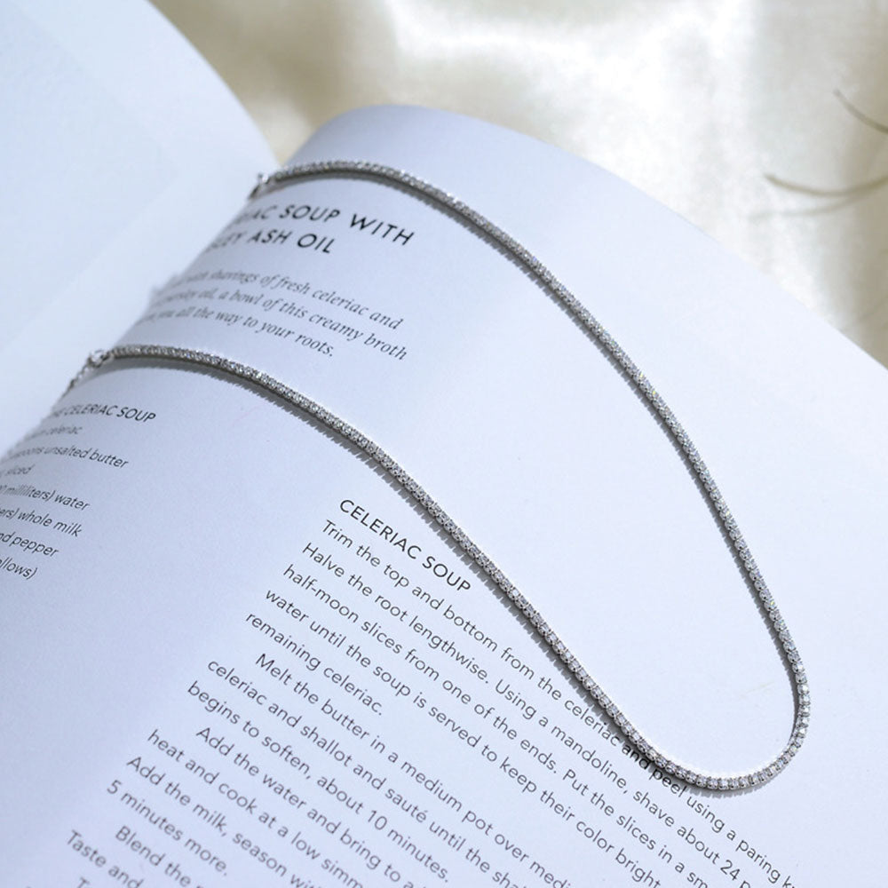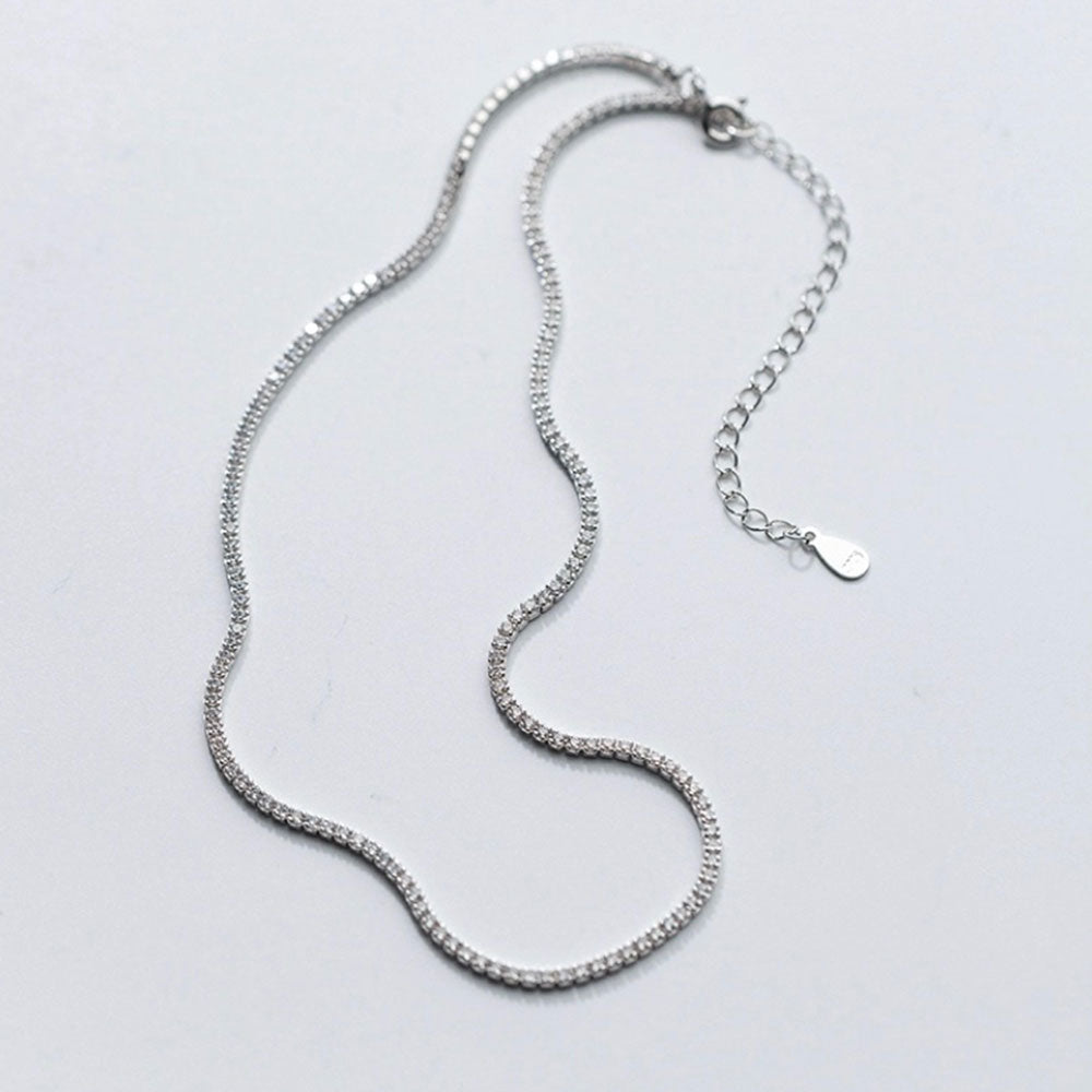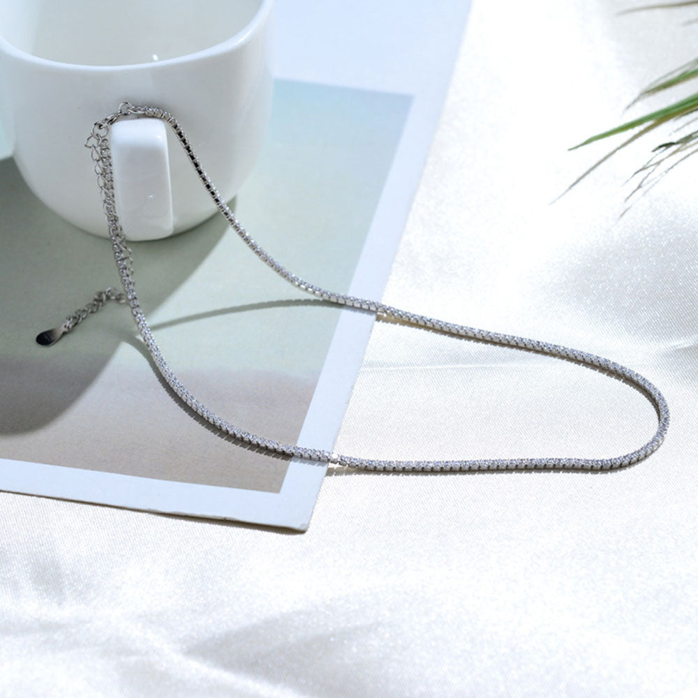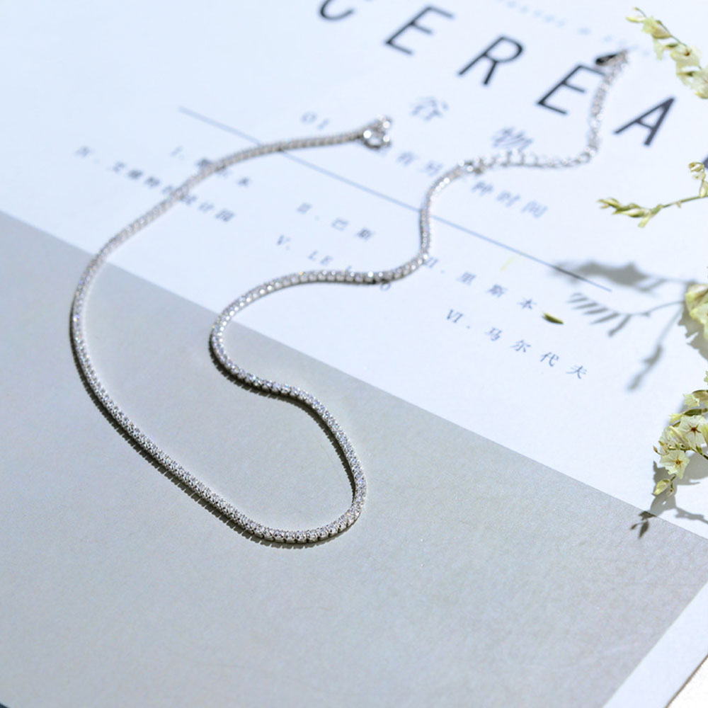 Fashion 925 Sterling Silver CZ Crystal 2MM Tennis choker necklace for girl