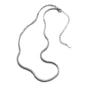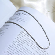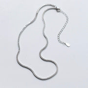 Seven50's Tennis necklace showcases a delicate box chain embellished with dozens of shimmering white stones.