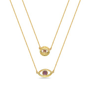 14K GOLD PLATED STERLING SILVER PURPLE STONES DOUBLE EYES SCAPULAR NECKLACE