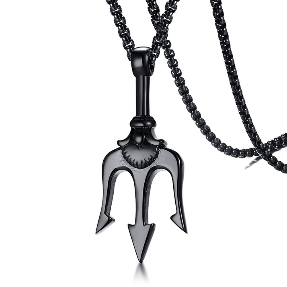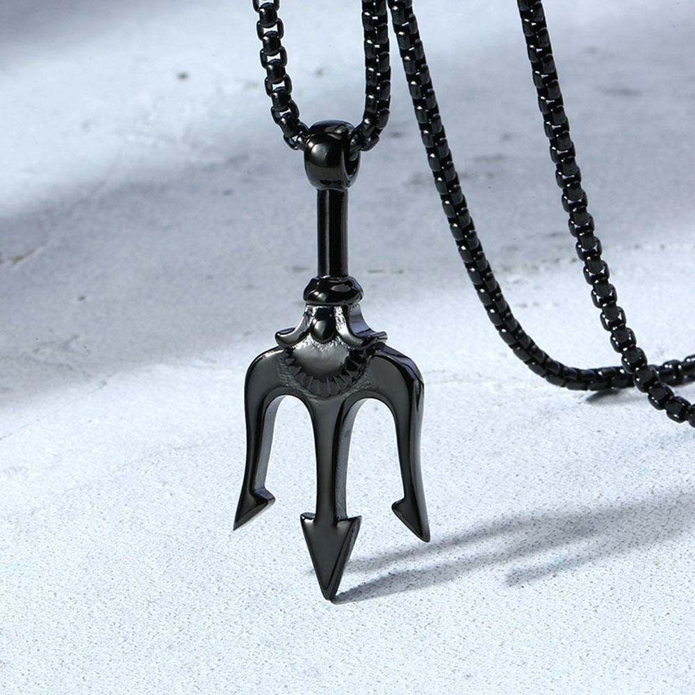 Mens-fashion-jewelry-black-fork--pendant-necklace-in-stianless-steel