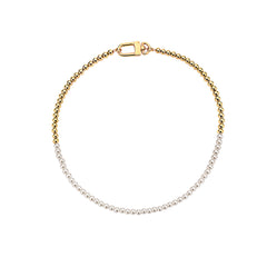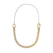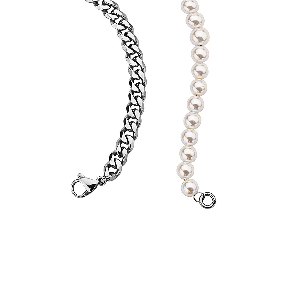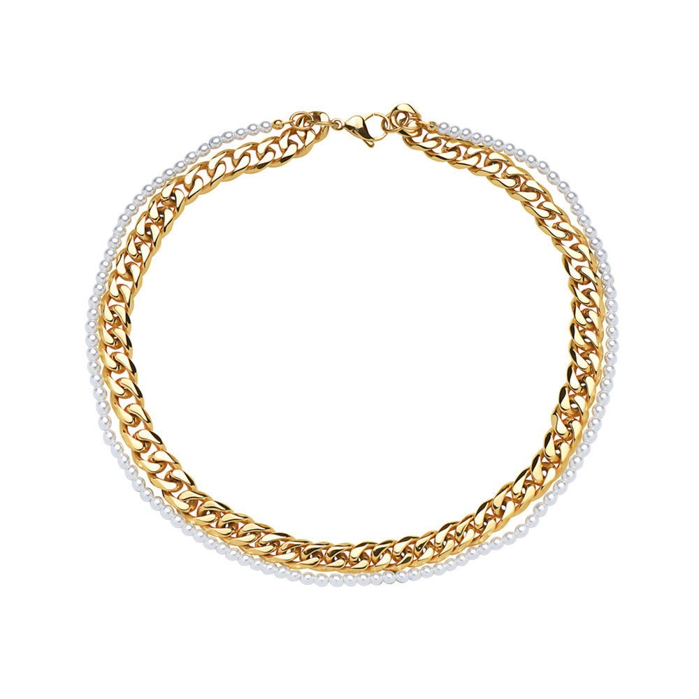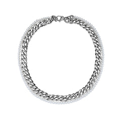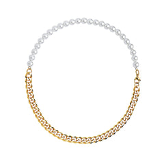 18'' Chrome IP Gold Plated Half 10mm miami cuban link chain and half 8mm pearls choker necklace for Men and Women in Stainless Steel