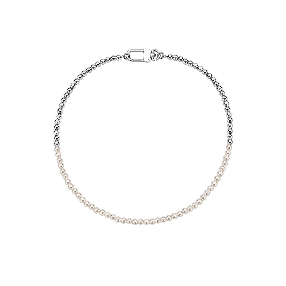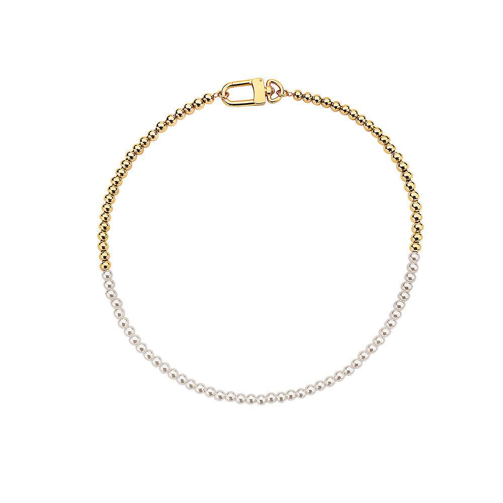 HALF WHITE 6MM WHITE PEARLS AND HALF 6MM BEADS LINK CHOKER NECKLACE