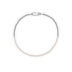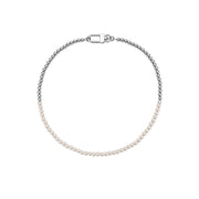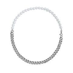HALF WHITE 6MM WHITE PEARLS AND HALF 6MM CUBAN LINK CHOKER NECKLACE