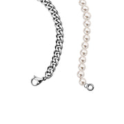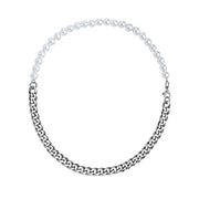 HALF WHITE 8MM WHITE PEARLS AND HALF 10MM CUBAN LINK CHOKER NECKLACE