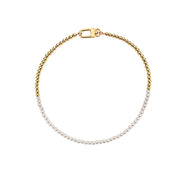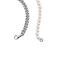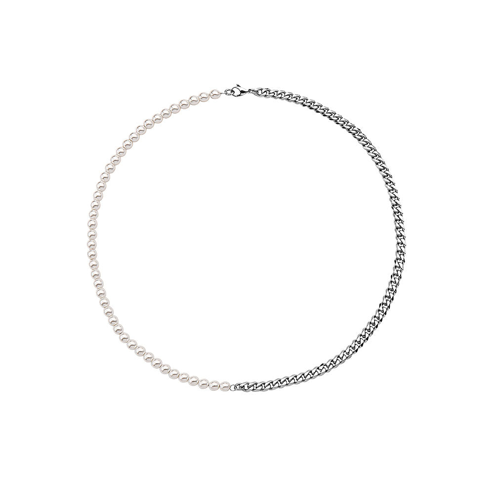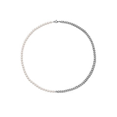 HALF WHITE 5MM WHITE PEARLS AND HALF 10MM CUBAN LINK CHAIN NECKLACE