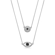 The evil eye scapular necklace is believed to ward off negative energy; Thus we suggest wearing it with everyday looks for protection. The sterling silver mini eye scapular chain link necklace has been hand dipped into a protective bath of precious metals in order to maintain its color over time.