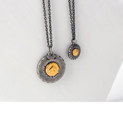 The sterling silver eye scapular necklace have a 14KT Yellow Gold Clad.