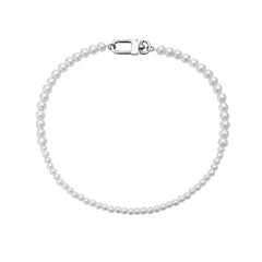 DOUBLE LAYER 5MM WHITE PEARLS AND 10MM CURB LINK CHAIN NECKLACE