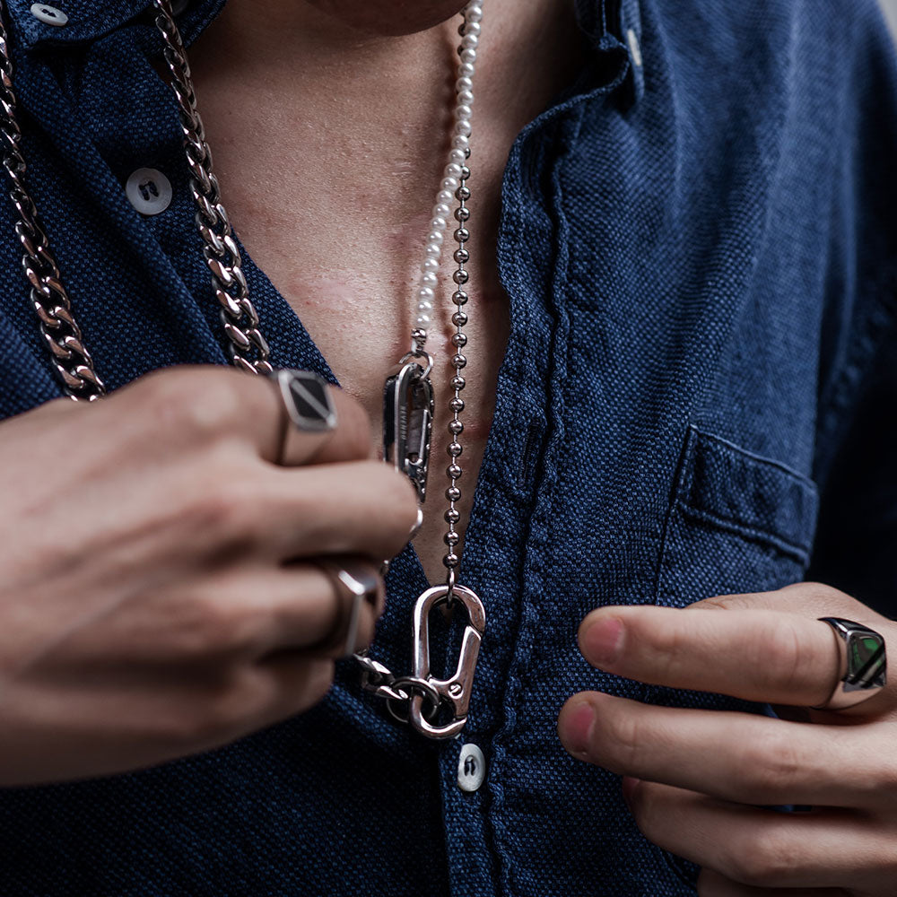 ANDREA DENVER HALF CURB LINK CHAIN HALF BEADS CHAIN NECKLACE